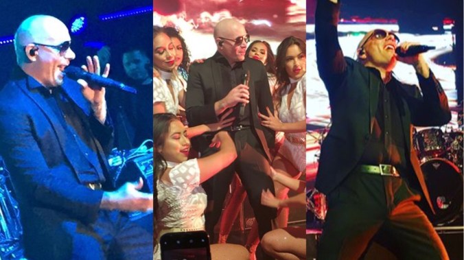 Mr. Worldwide took the stage for a rocking show in front of the sold-out crowd at the gala last night, performing hits like, Give Me Everything, International Love, and Time Of Our Lives.