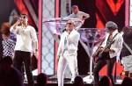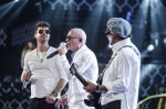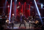 Pitbull then infused some rock-and-roll into his performance as he welcomed Robin Thicke, Joe Perry and Travis Barker to the stage to sing their brand-new track, “Bad Man.”